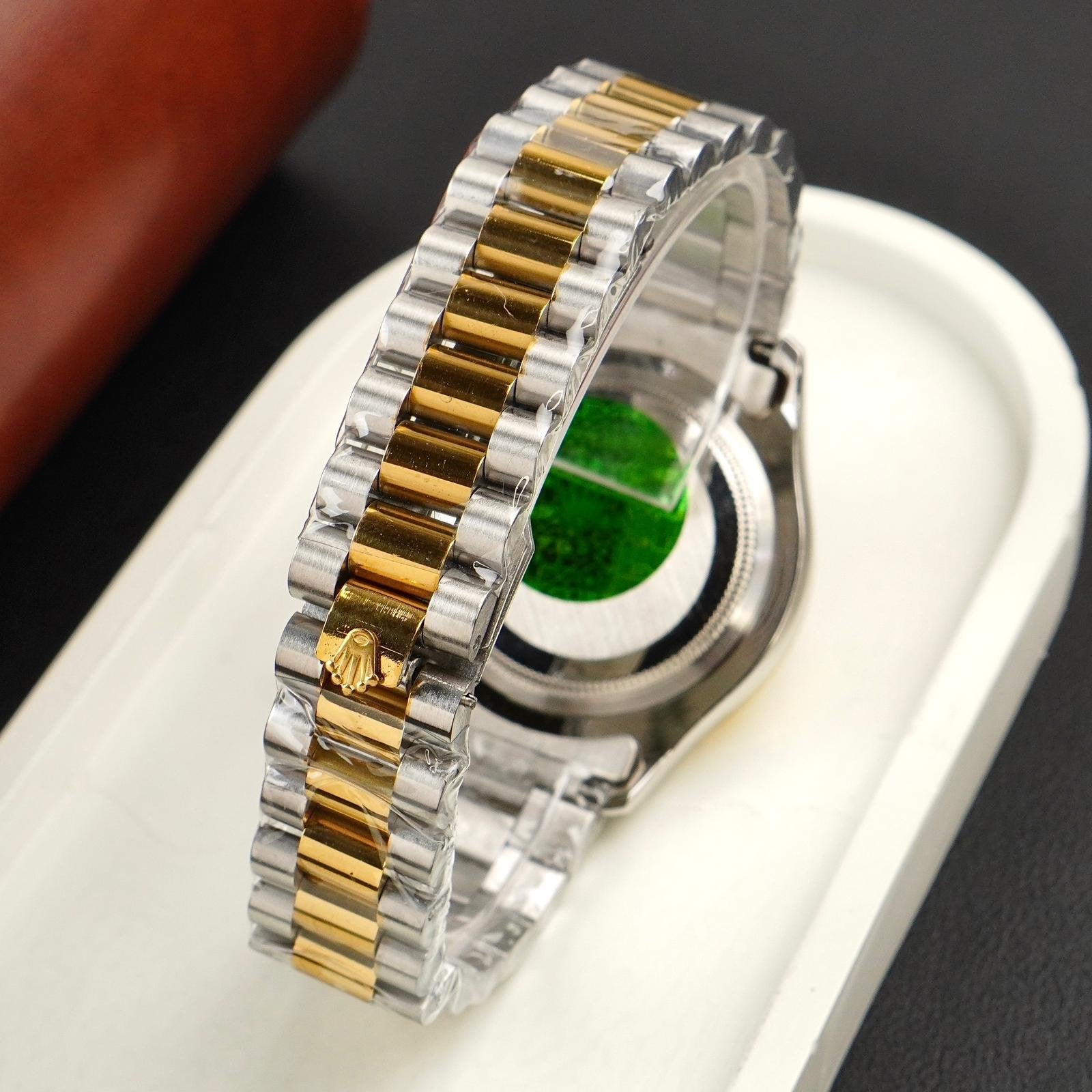 The Rlx Oyster Perpetual Day-Date is a high-end timepiece known for its precision and reliability. The iconic design features a sleek stainless steel case, scratch-resistant sapphire crystal, and a self-winding mechanism. With its prestigious name and impressive craftsmanship, this watch is perfect for those seeking a luxury accessory that stands the test of time
